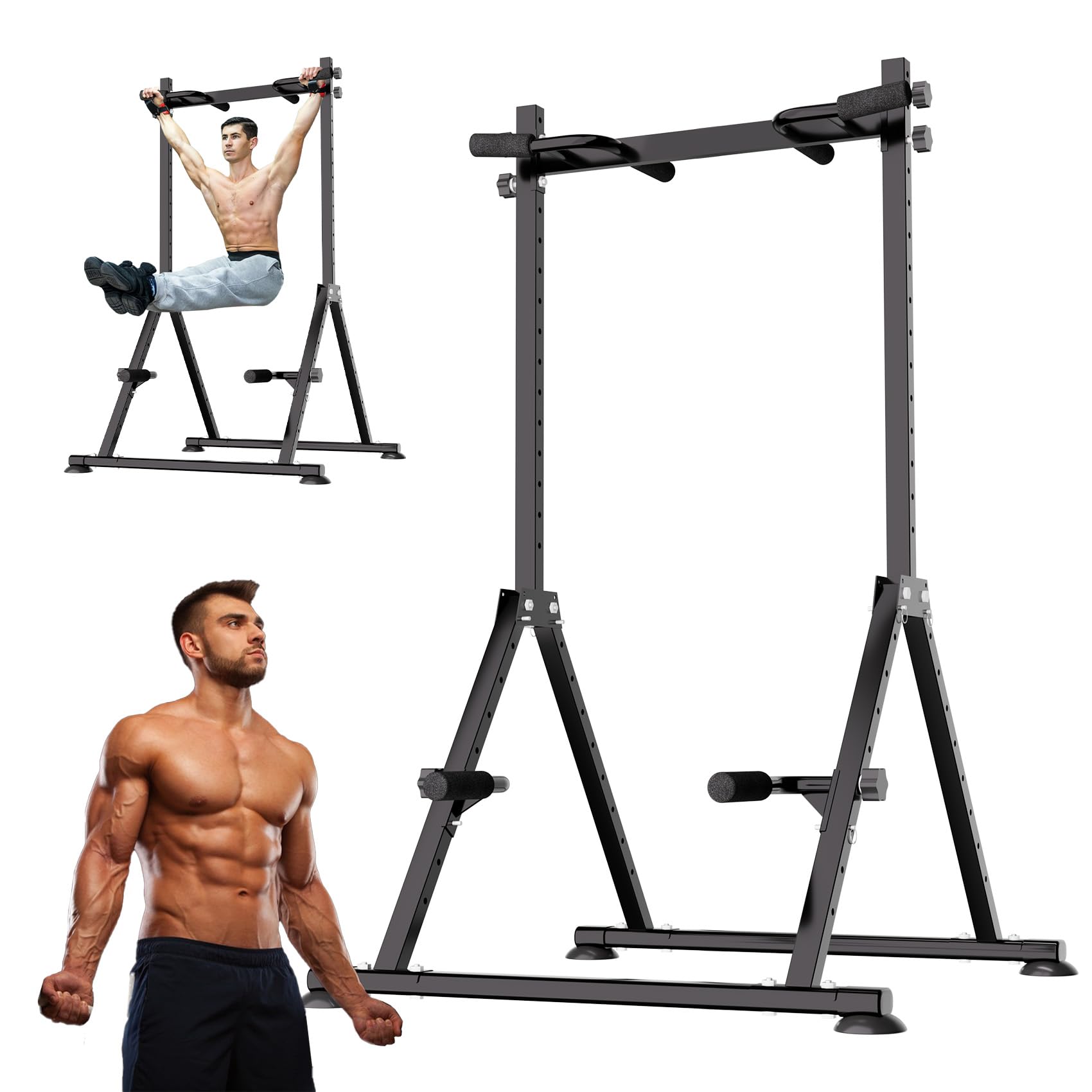 The multi-function design accommodates pull-ups, dips, vertical leg raises, and push-ups, making it a true all-in-one gym station.