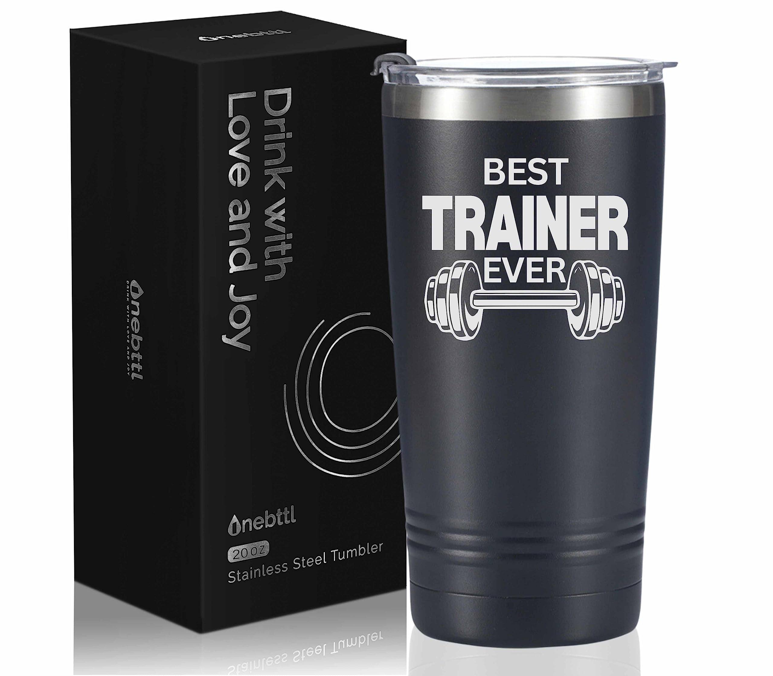 The Onebttl "Best Trainer Ever" tumbler hits the mark for personal trainers who need a reliable, stylish gift.